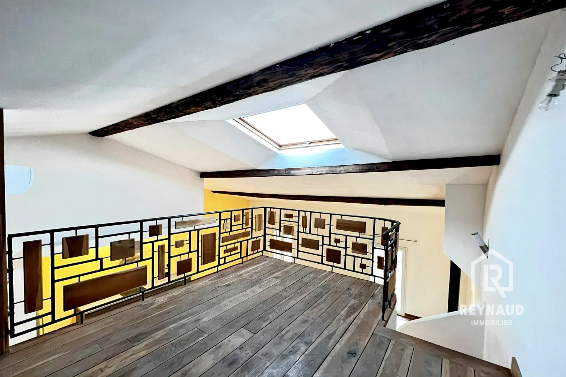 Spacious living area of 42 m² with open kitchen and mezzanine, 2 bedrooms of 11 m² and 16 m², TERRACE and GARAGE / WORKSHOP of more than 90 m².